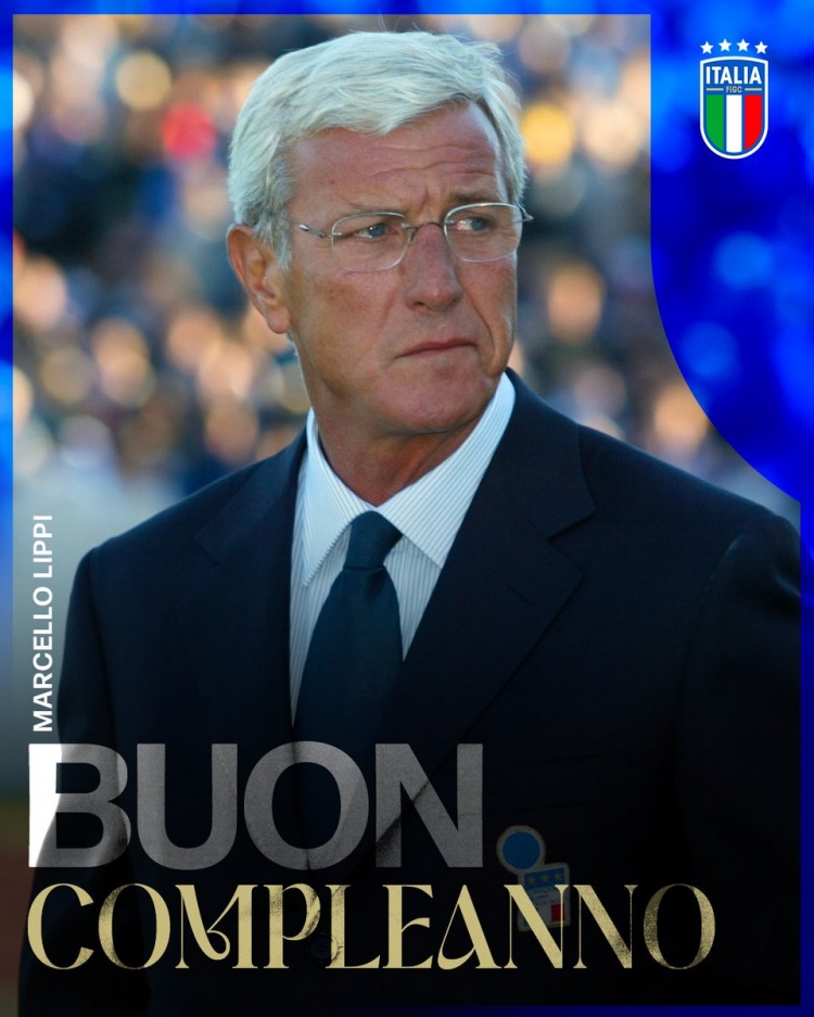 意大利国家队晒出里皮的生日海报,配文:“生日快乐,马尔切洛(里皮)!”